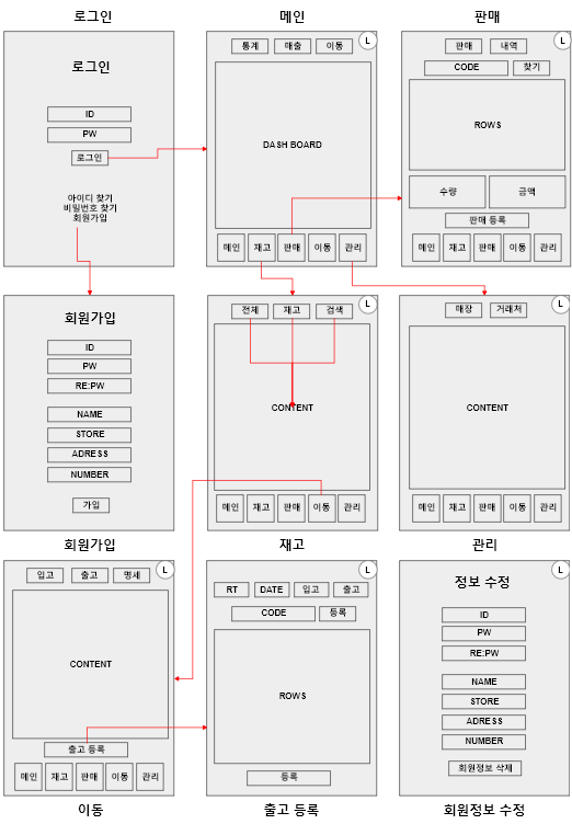 개발 환경 IDE : Visual Studio Code Front-end : React, MUI Back-end : Node.js, MySQL 시스템 구성도 테이블 구성도 와이어 프레임