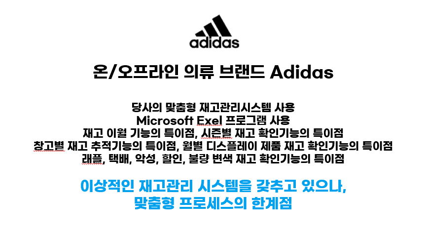 이해 기존의 재고 관리 시스템 01 - 엑셀 기반 프로그램의 형태. 02 - 회사 또는 업종 등 맞춤형 프로세스. 03 - 재고 추적을 위한 카테고리와 내용 등 분류 기준이 존재. 04 - PC 환경의 접속. 사용자